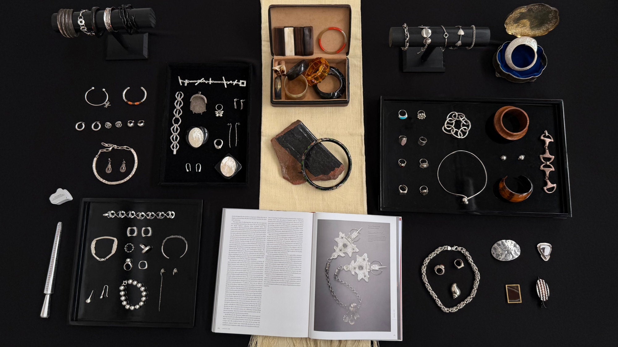 The collection moves fluidly between materials, eras, and aesthetics: precious designer jewellery in sterling silver 925, carved mother-of-pearl, vintage pieces alongside more modern ones. ARCHIVE is eclectic and instinctive, guided less by rules and more by intuition. Each piece is united by a simple idea: it feels right.