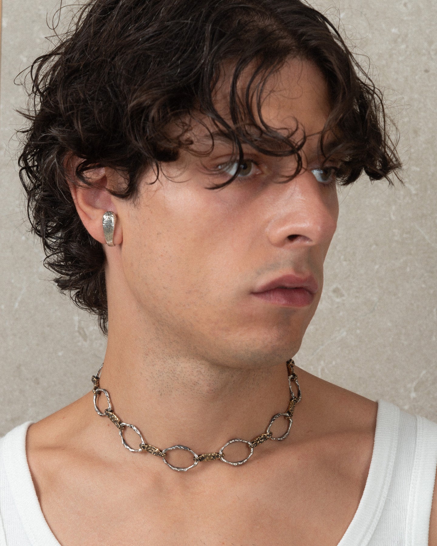 Its hammered finish adds texture and dimension, catching the light in the most effortless way. Perfect for wearing solo for a minimalist touch or stacked with your favorite studs for a curated, layered look.